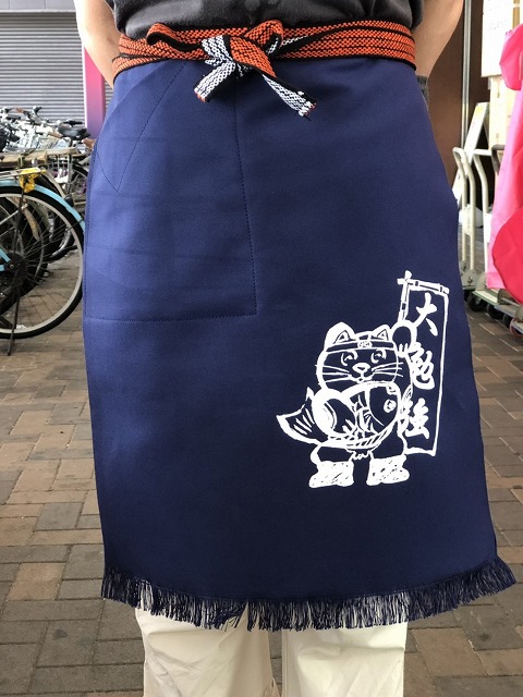 ポケット付き帆前掛 (紺)招き猫マーク入り 綿100%