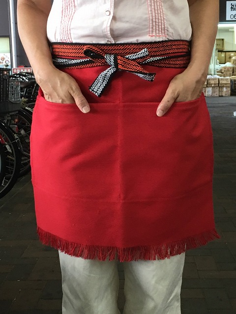 ふさ付き二つポケット無地帆前掛(赤) 綿100%